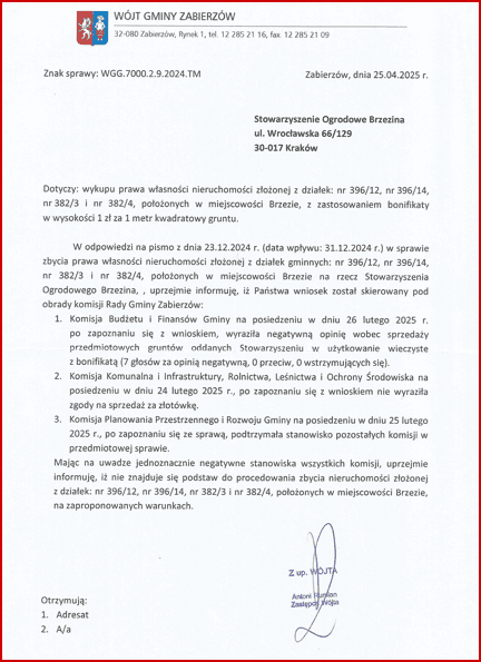 NAJNOWSZA ODPOWIEDŹ GMINY, W SPRAWIE WYKUPU NIERUCHOMOŚCI
